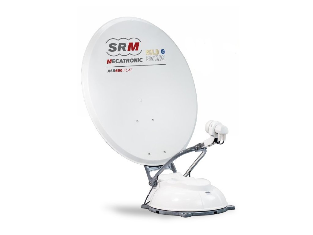 Satelitný systém SRM Mecatronic ASR 650 FLAT GOLD EDITION s Bluetooth a GPS je kompaktný a zároveň robustný a spoľahlivý automatický satelit, vhodný pre obytné vozidlá a karavany s obmedzeným priestorom na streche.